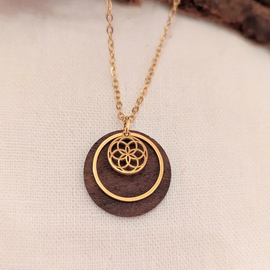 Halskette mit Holz "Lebensblume"