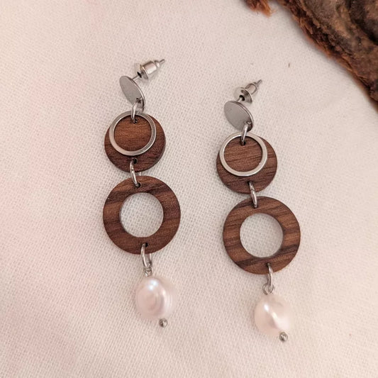 Holzohrringe "Perlenglanz"