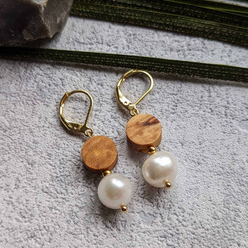 Holz ist ein lebendiges Material. Je nach Holzart und Haarfarbe verändert sich die Wirkung deiner Ohrringe.