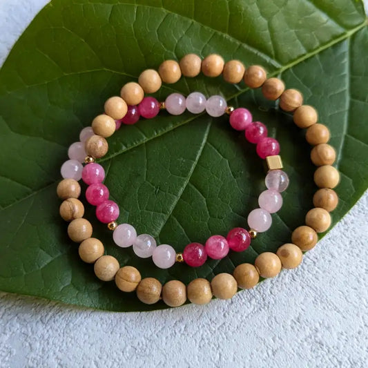 Wickelarmband "Gloria" aus Olivenholz und Edelsteinen